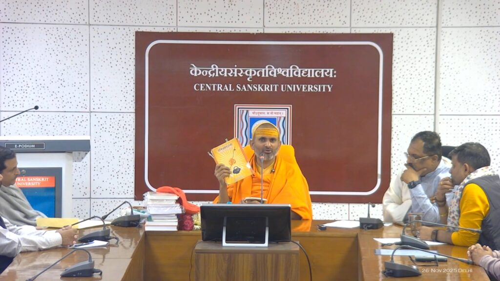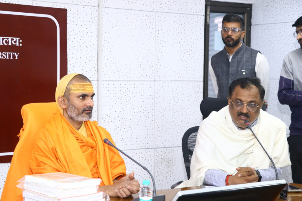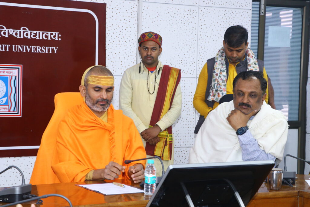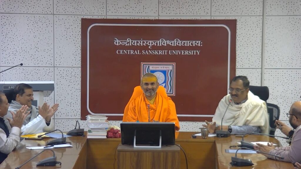 few days back Vidhushekhara Bharati visited Sri Lal Bahadur Shastri Sankrit University and the VC of Central Sanskrit Univesity and other VC’s of Lal Bahadur University and Tirupati University VC welcomed Vidhushekhara Bharati as a Sringeri Peethadheeshwr and Shankarachaya but Swami Govindananda Saraswati sitting in Central Sanskrit Univesity infront of VC Sri Varkedhi Srinivas Mahoday very politly condemed Vidhushekhara Bharati, and not only the entire Central Sanskrit University VC and staff but the entire Sanskrit world and all the Vedic scholores realised the ongoing mistakes happening from sringeri , एक एवाभिषेच्यः स्यादन्ते लक्षणसम्मतः ।